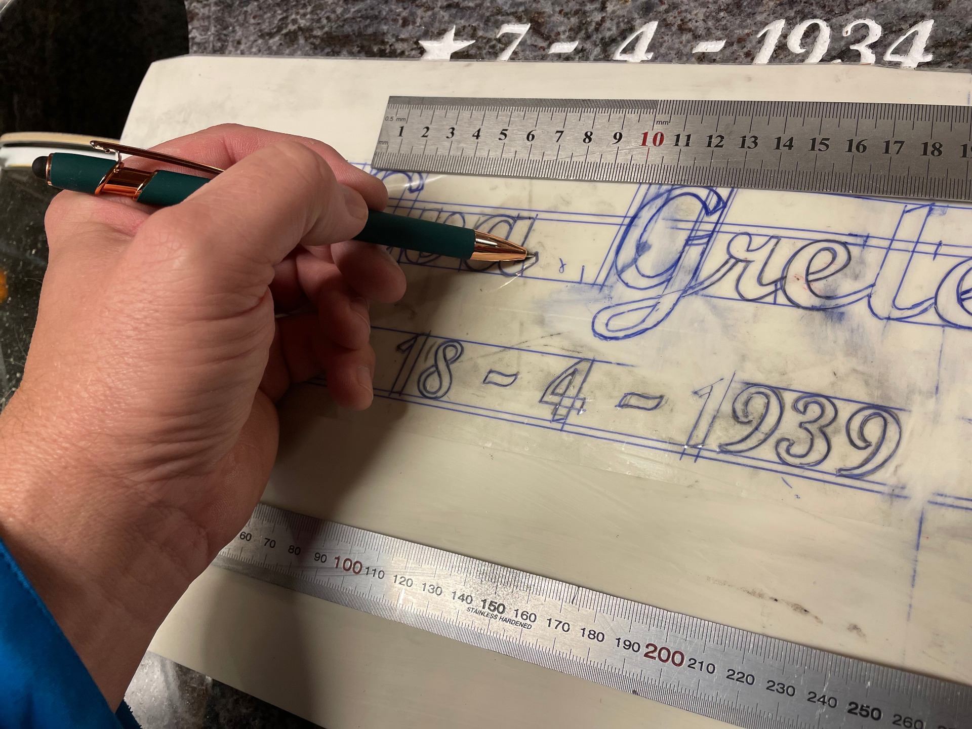 Navnetilførsell er noe vi utfører heleåret. Dette utføres på vårt verksted her på Frøya. Vi har de fleste skrifttyper og finner alltid det som er på steinen fra før. Mange som legger inn nytt navn ønsker også å pusse opp det føste navnet i steinen om det er nødvendig.